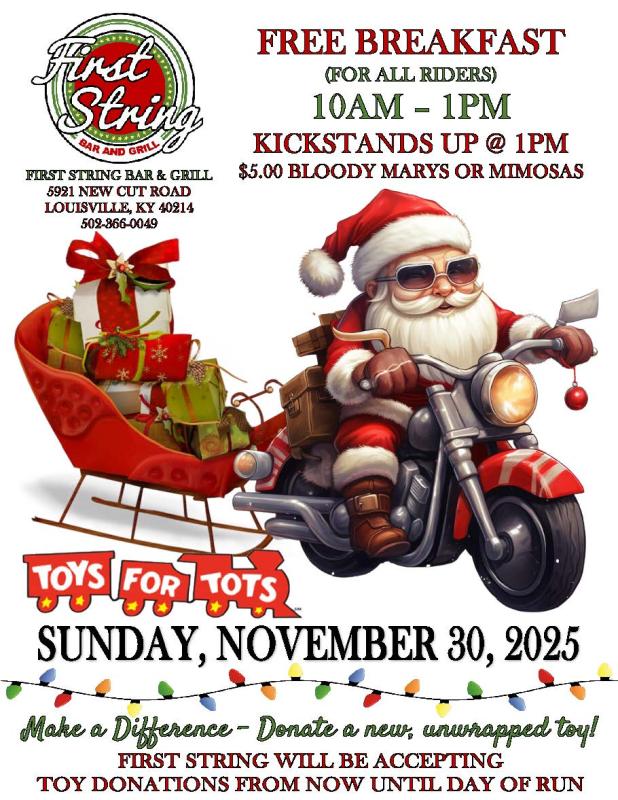 Toys for Tots Run & Free Breakfast at First String Bar & Grill