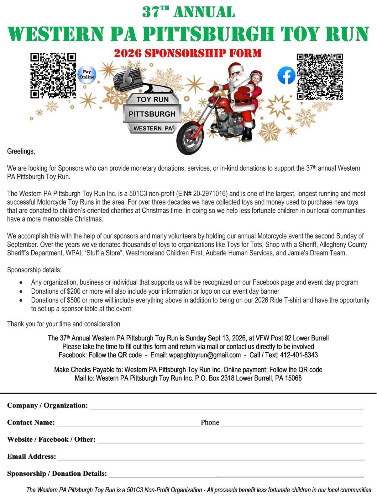37th Annual Western PA Pittsburgh Toy Run