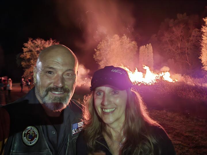 Old fashioned biker camping party.